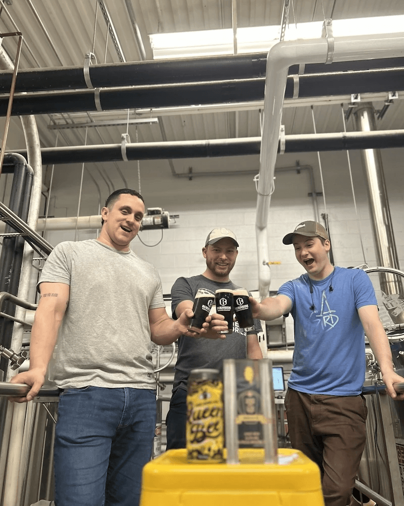 Burnside runs a mean and lean brewing team of Logan Wolfe, Jonathan Harris, and Connor MacLeod. Their combined brewing experience of over 30 years keeps the taps flowing smoothly.