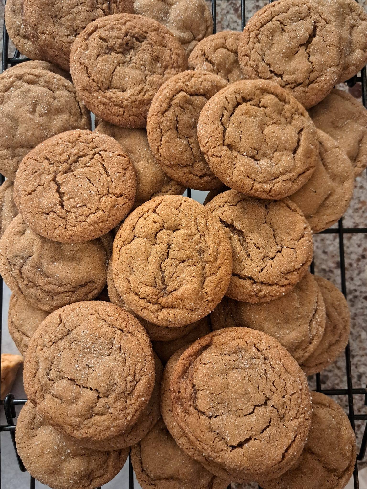 What makes them special: These cookies fly off the table at farmers markets. The combination of ginger, cinnamon, and molasses creates layers of warm, spicy flavor that customers can't resist. They're perfect with coffee, beautiful on a dessert tray, and capture the essence of traditional home baking. Each batch is rolled by hand and baked fresh, creating that ideal texture contrast—crispy edges giving way to a tender, flavorful center.